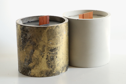 Cement Round Wood Wick Candles